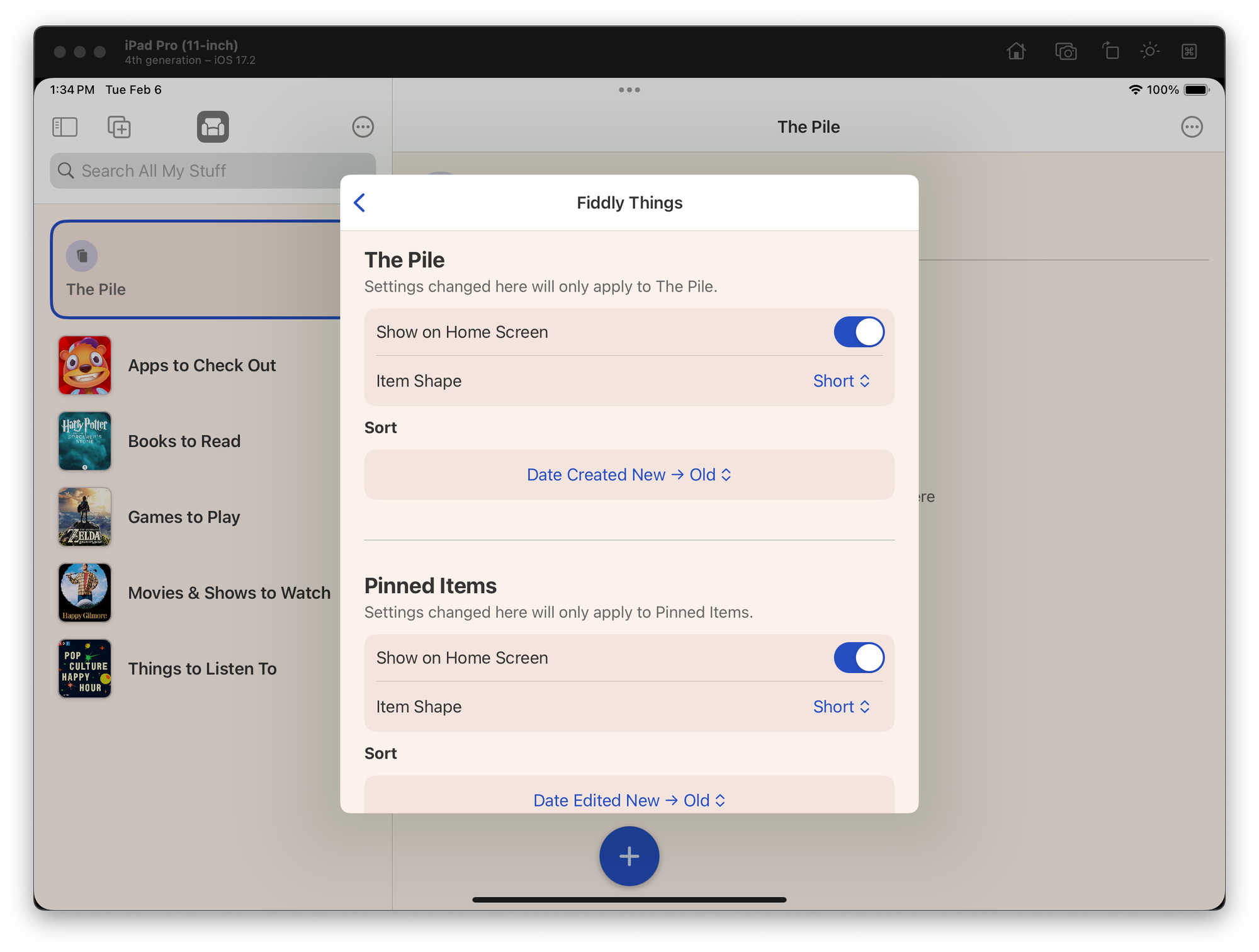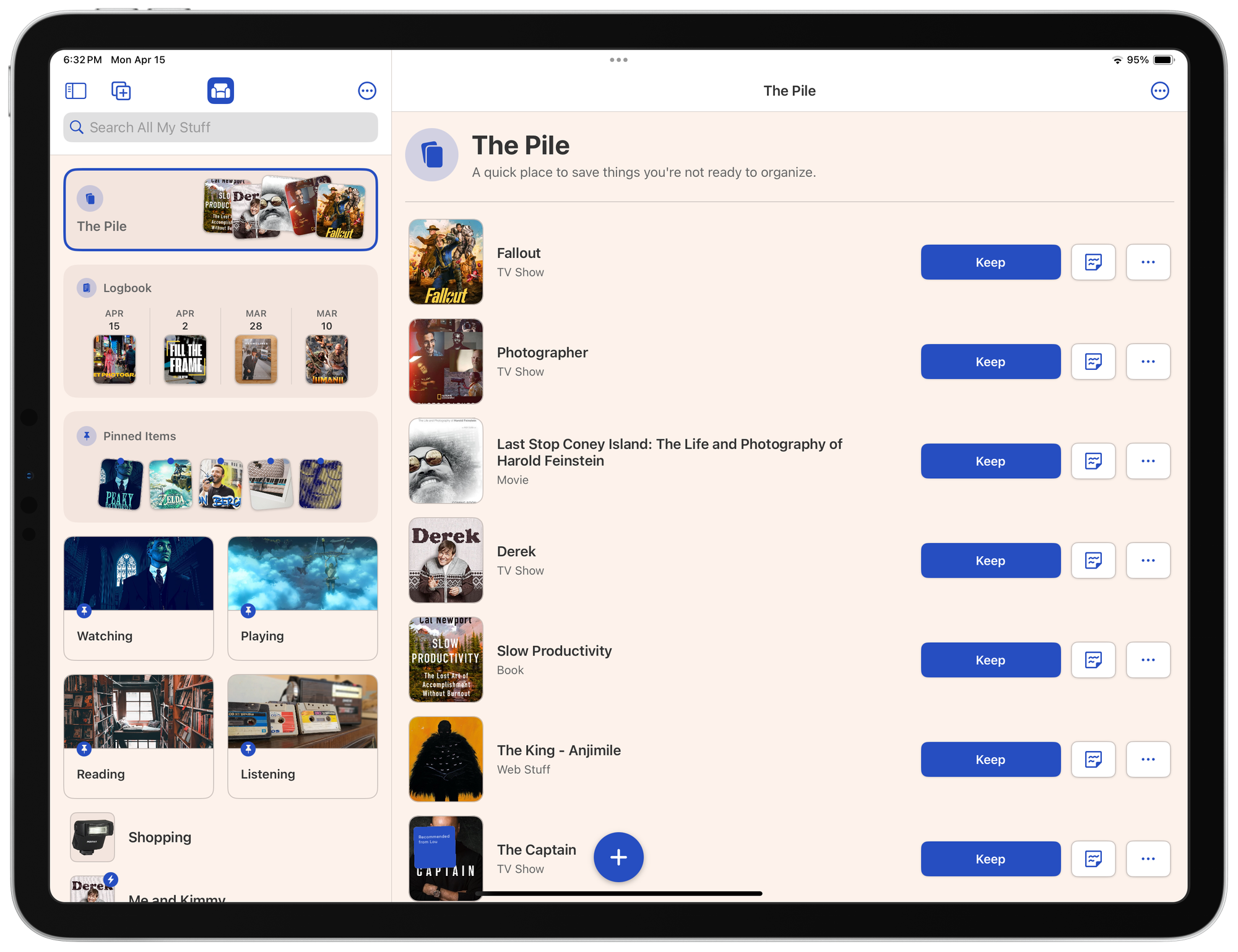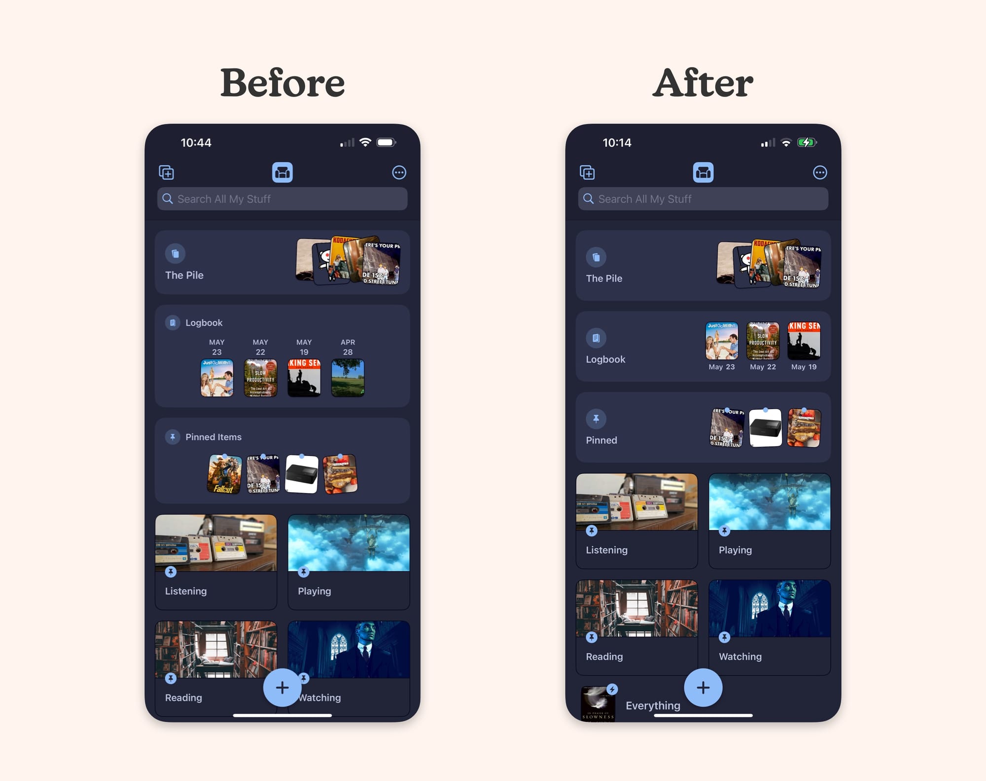 Since the release, I’ve been running into some layout issues across devices which gave me a chance to iterate on the design a bit. I personally love the way The Pile card is designed. You have the title on the left, and the contents on the right. I wanted to see if I could bring that same structure to Logbook and Pinned Items. It turns out I can!