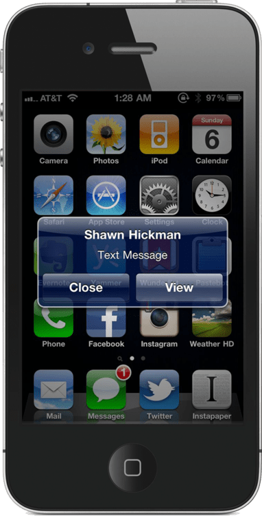 Currently, when I get a text or push notification on my iPhone, it interrupts whatever I’m doing and shows me a dialog box that I must interact with. It’s insanely annoying.