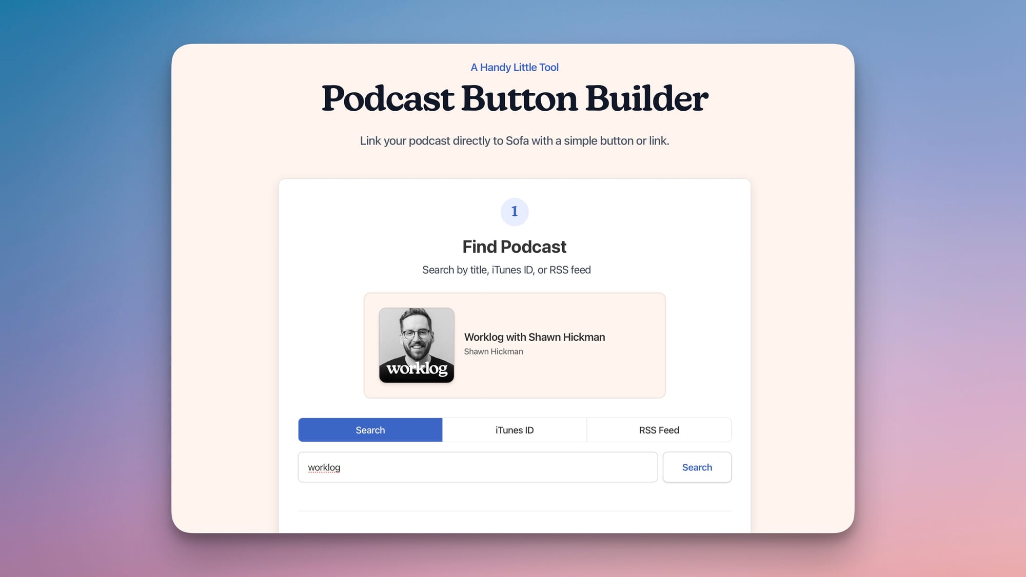 If you’re a podcaster, I built a handy little tool on Sofa’s website to help you easily create a “Listen On Sofa” button for your podcast.