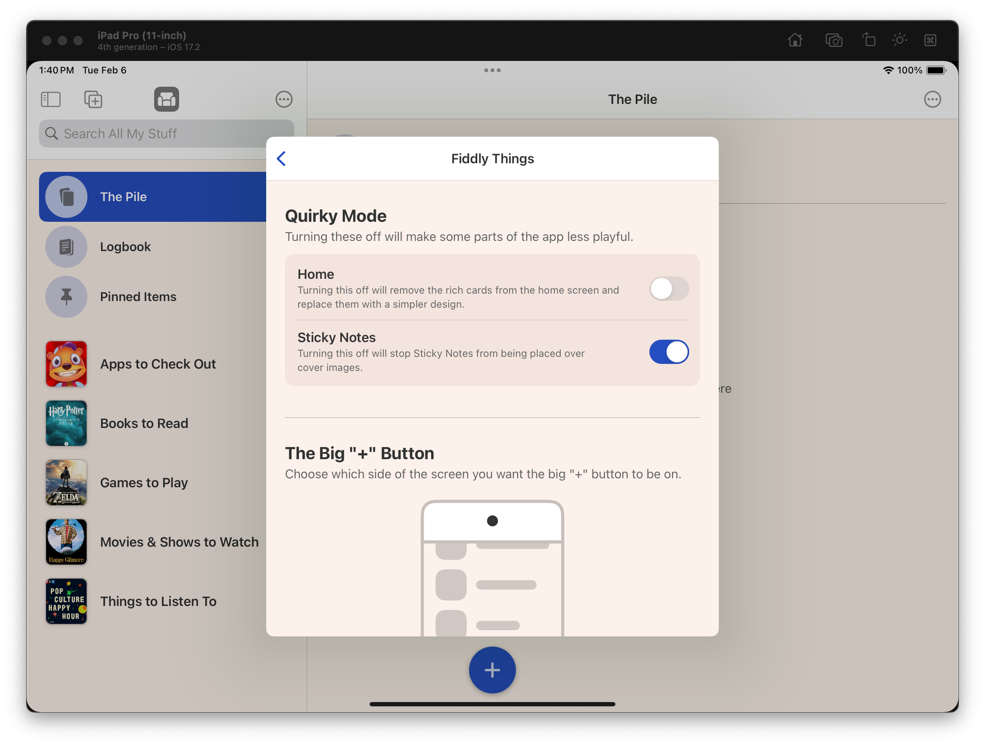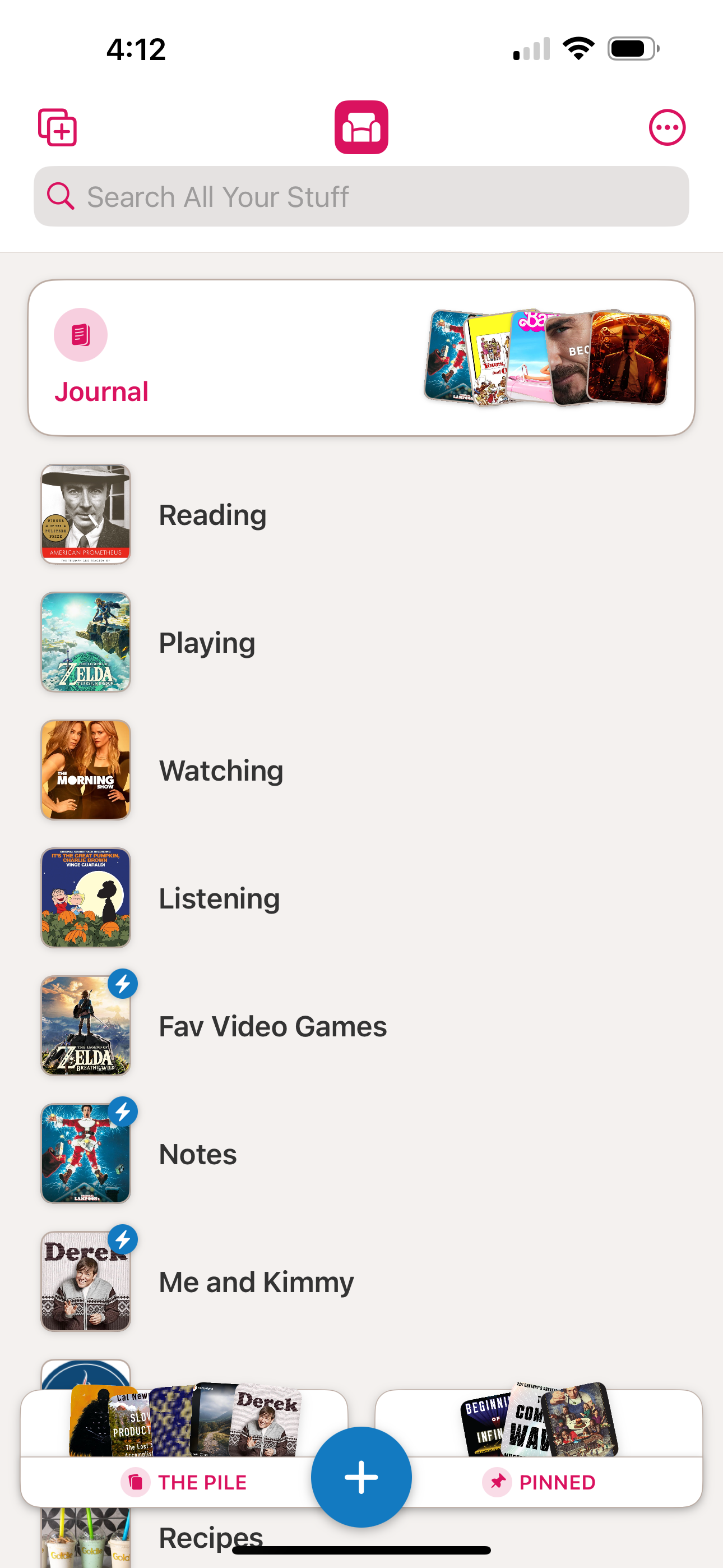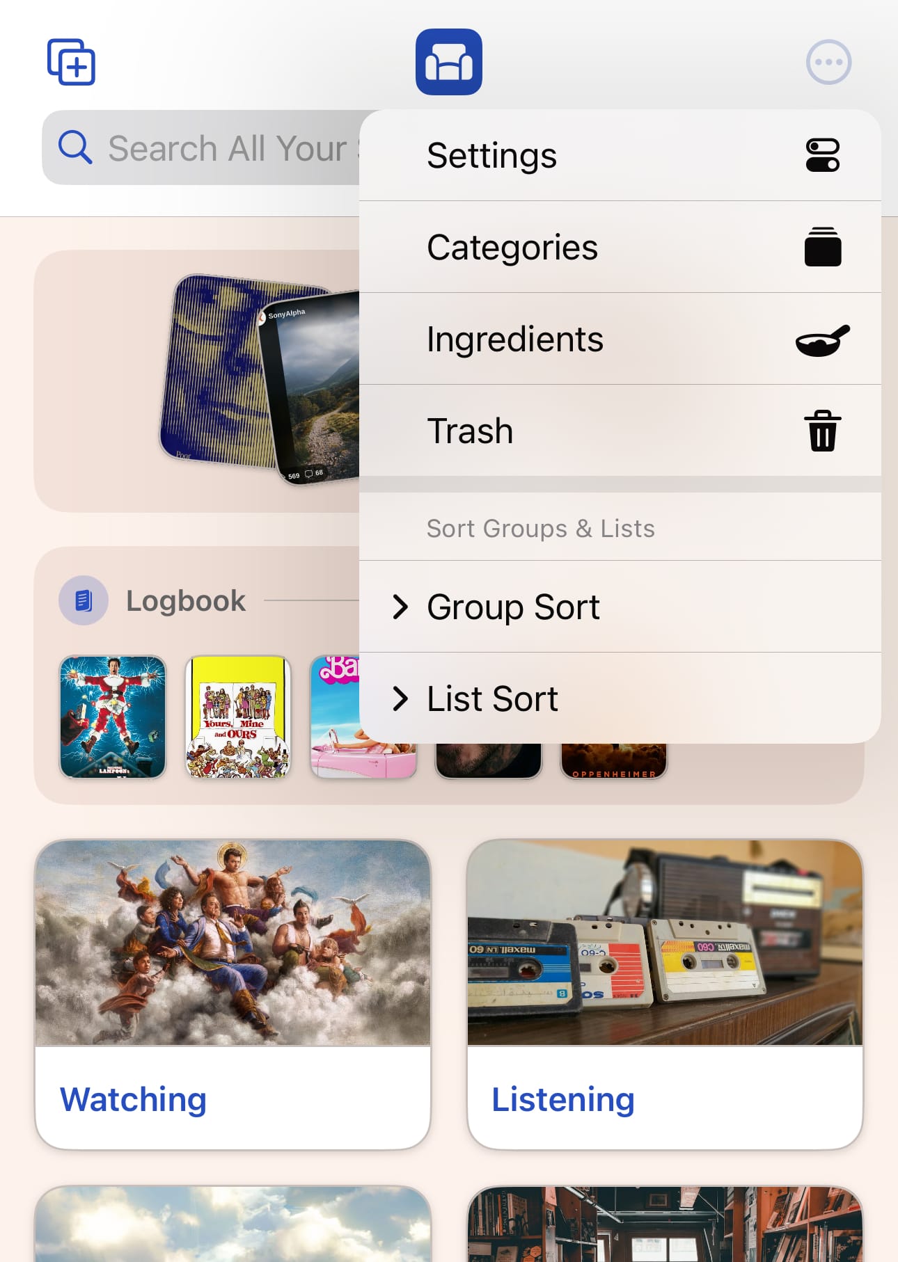 For Sofa 4.0, I redesigned the Home Screen to include rich, widget-style cards for the primary lists: The Pile, Logbook, and Pinned Items.
